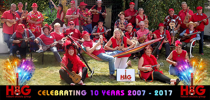 HUG began on 28 February 2007 with 3 people and 2 ukes…but it was a start! The very next week there were 7 people and 7 ukes and by May HUG performed their first gig. In June HUG participated in an ABC Radio’s Breakfast live broadcast; in November HUG was filmed for a Christmas episode of ABC TV’s Collectors program (aired in December); finally in December HUG performed live on ABC Radio’s Breakfast program’s end of year show. Not a bad first year!!